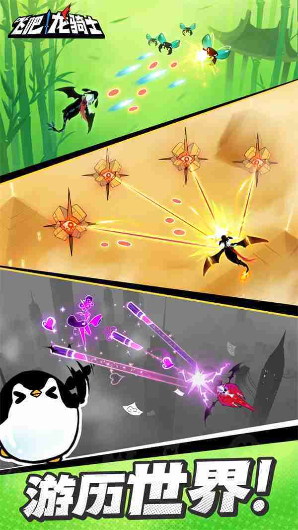 《飞吧龙骑士》是一款集合了飞行弹幕射击、、、Roguelike要素和挂机养成的休闲手游,,,,极具创意的吞食子弹反击玩法,,,,突破传统飞行射击的刻板限制,,带来了独特的爽快清屏体验。。。。