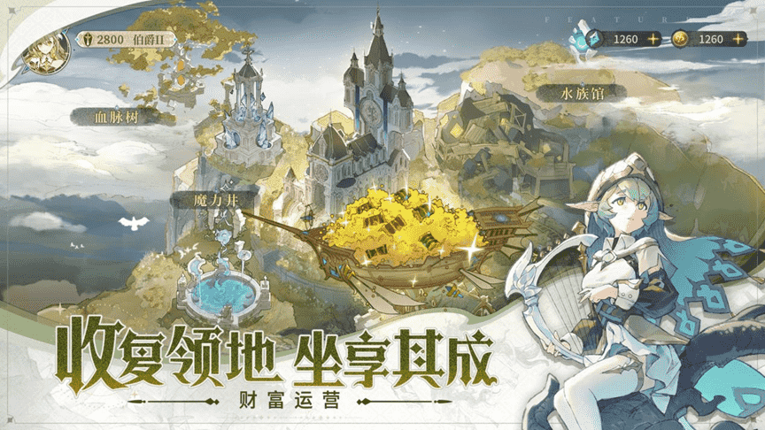 随着冒险推进,,,,你可以陆续解锁各大王国的资源地块,,,这些地块将为家族庄园带来源源不断的资源助力,,,帮助家族团队升阶成长。。据说,,,某些地块还是绝佳的钓鱼消遣据点......