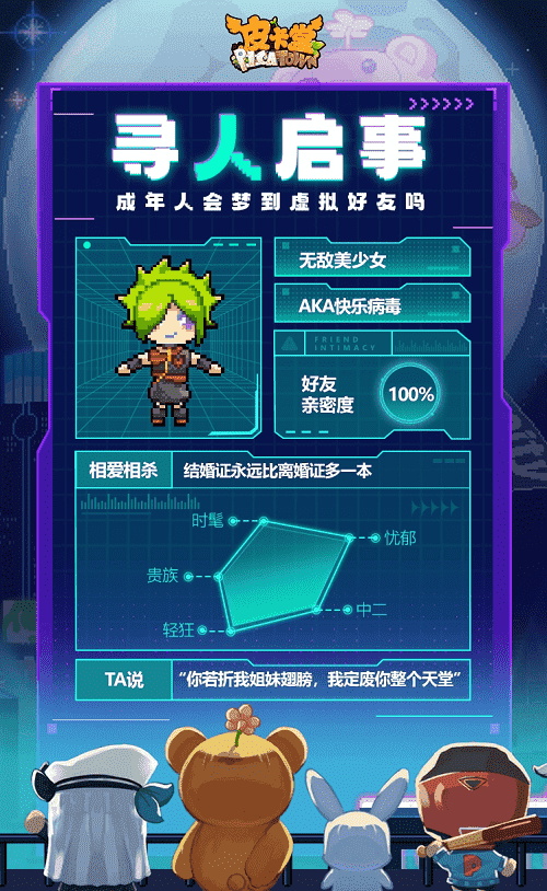 除此之外,,更丰富的全新玩法也会在这里与大家见面,,,,希望给大家带来不一样的游玩体验。。。。升级后的皮卡小镇,,大家可以和闺蜜一起逛购物街,,邀请三两好友来到自己开的小店,,,,还可以在小屋体验海岛或城堡生活……总之,,希望大家能在游戏中找回最快乐的自己,,,,享受最纯粹的社交魅力。。